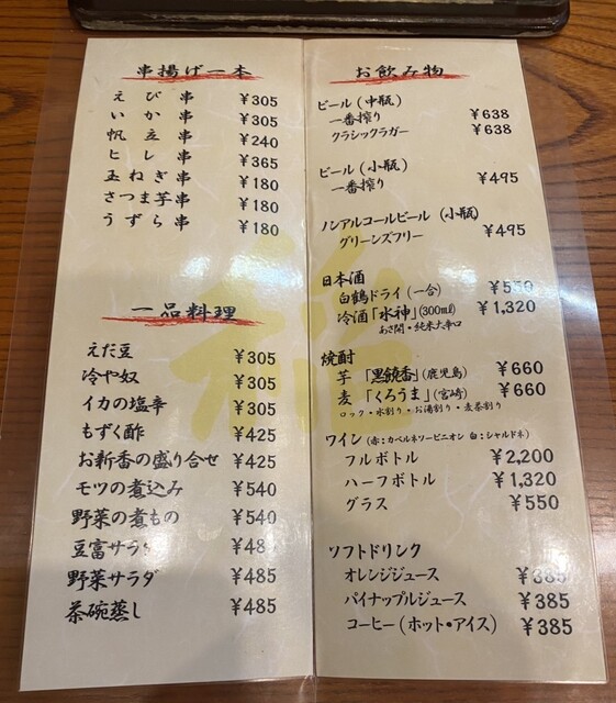 | ドリンク | 日本酒あり、焼酎あり、ワインあり |