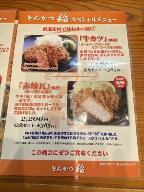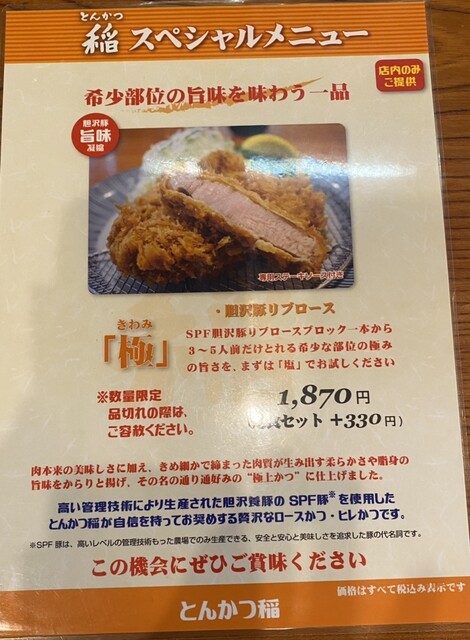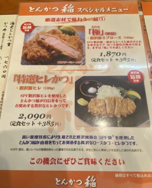 とんかつ稲 スペシャルメニュー