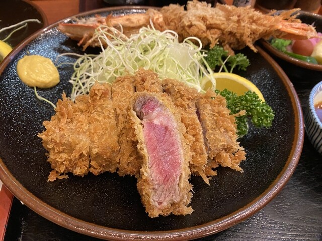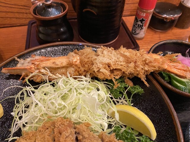 牛カツセット、大海老フライ (2025年3月28日撮影)