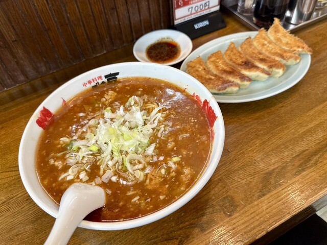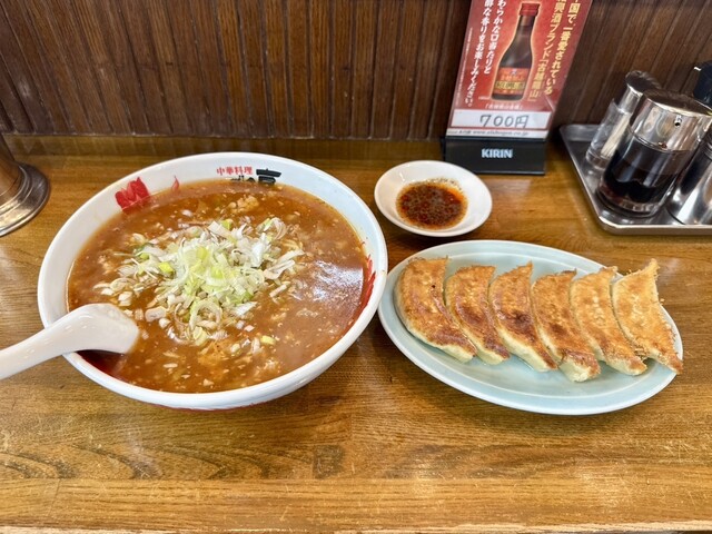 看板メニューの担々麺1000円を夫が注文 餃子600円は、2人で3個ずつ分けて一皿 私は五目焼きそば1000円を注文 ただの焼きそばは、具材がもやし目立つ 五目は違う パプリカとピーマンの2色づかい→ピーマン好きには最高 食感も歯応えがあり良い キャベツ→健康な胃に一役... 詳細を見る