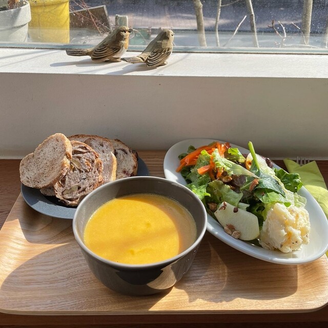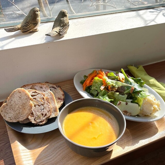 隣り合わせて週末だけオープンのパン屋さんのカフェ。 サンドもスープもドリンクも文句なしの味わいで、お腹も身体も大満足!間違い無し!!
