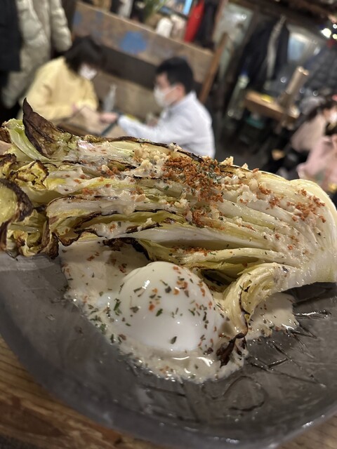 白菜のロースト&温玉のジンジャーホットサラダ (by お店)