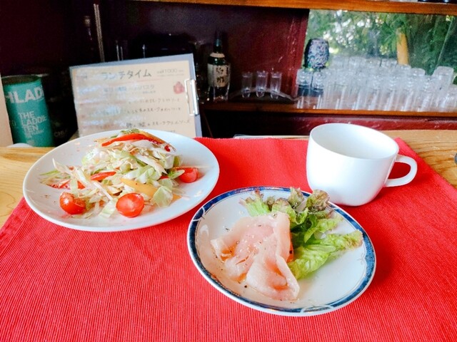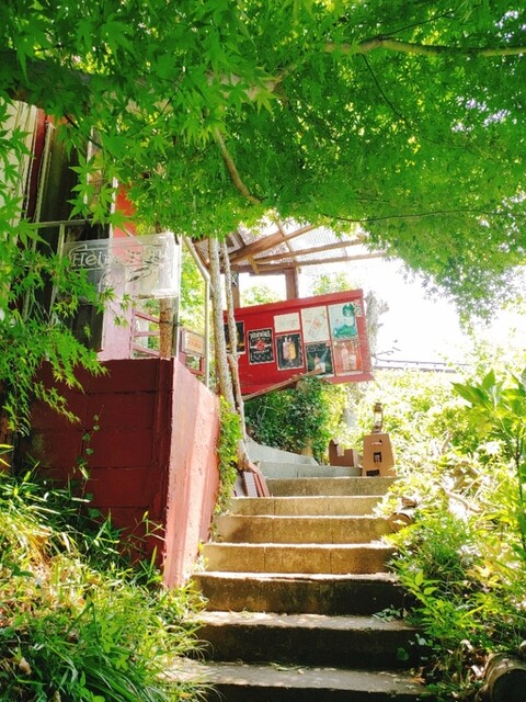 入口の看板がOPENとなっているものの、お店が緑に囲まれ見えないので、本当に営業しているのか不安になりながら登って行ったところ、優しい店員さんに迎えて頂き無事に入れました(。•̀ᴗ-)✧