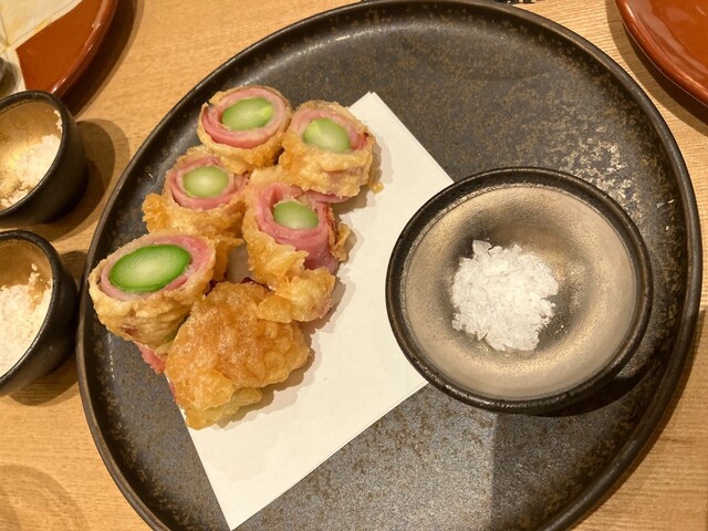 土曜夜、新百合ヶ丘でお仕事の後20:45から予約して初訪問です。2/25にオープンしたばかりというお店。店内はお席も広くて綺麗です。 瓶ビールのグラスが小ぶりで薄目のグラスだったのが私的にはかなり◎ お通しのマグロの煮凝り、魚臭かったら食べれない…と思いましたが全然!お出汁の味が美味しく、ペロッと食べてしまいました。 蕎麦の実が入ったサラダも季節野菜が入っていて美味しかったし、天ぷら... 詳細を見る