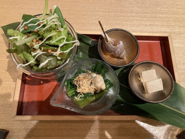 新百合ヶ丘駅(小田急線)から徒歩5分くらいの場所にある蕎麦割烹のお店です。食べログの点数は3.39しかないのですが、結構いつもお客さんが入っていて、いつか訪問してみたいと思っていました。ランチはセットメニューのみ?もしかしたら、単品とかもあるのかもしれません。最近、値上がりが行なわようです。ランチのセットメニューは1200円からです。蕎麦と季節の松花堂御膳が1600円の限定10食のメニュー。蕎麦と...