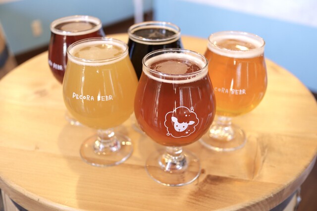 醸造所併設の「ペコラ ビアキッチン」では、最大9種類の自家製クラフトビールをお楽しみいただけます。ビールと楽しむ相性抜群なおつまみもご用意。ビールのお持ち帰りも可能です。