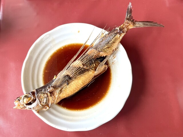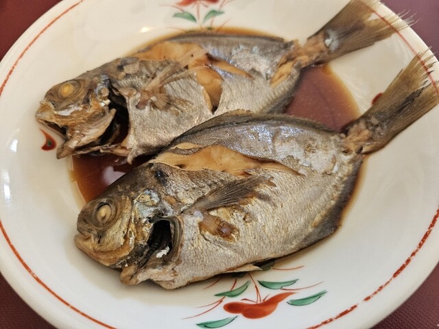 残念ながら金目鯛の煮付けは売り切れてたので、飛び魚の煮付けと鯵の刺身の定食を頼みましたが、飛び魚を食べたのは初めてでしたが美味しかったです...