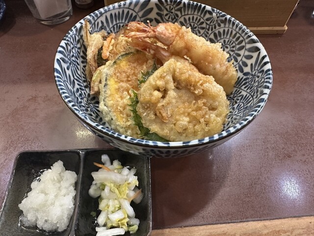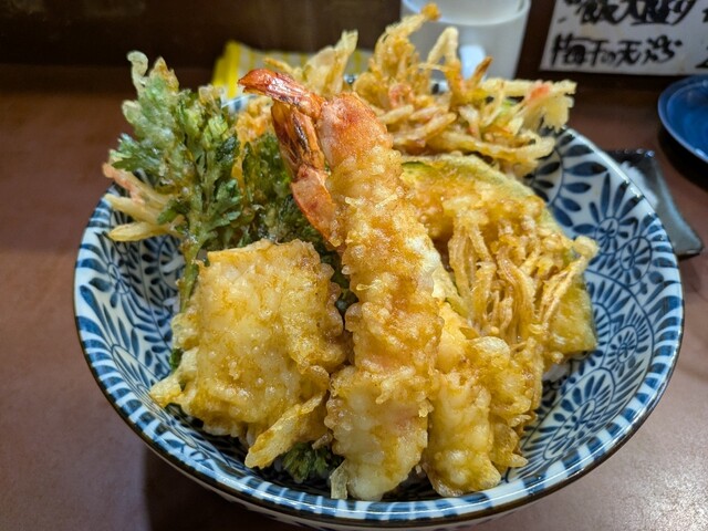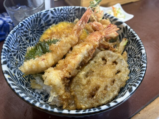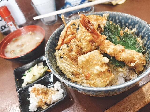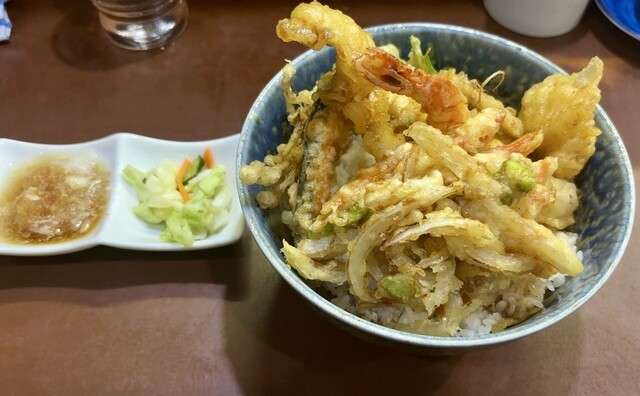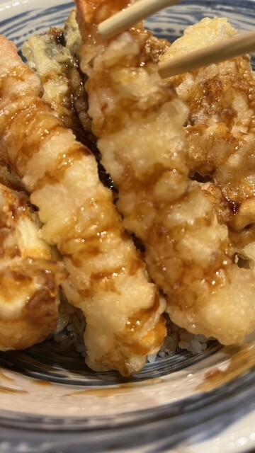 3回目の訪問です。 開店11時半に伺って、並ばずにギリギリ入店できました。 これまで、海鮮丼、岩松丼いただきましたが、 海老、穴子、かき揚げ、野菜天が数種類入った 高バランス、高コスパの海鮮丼1,200円を チョイス! 今回もタレ少なめでオーダー! あっさりとした天ぷらというより、... 詳細を見る