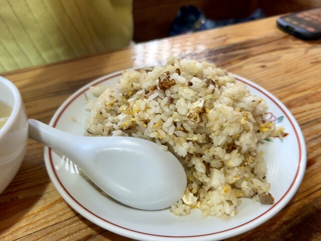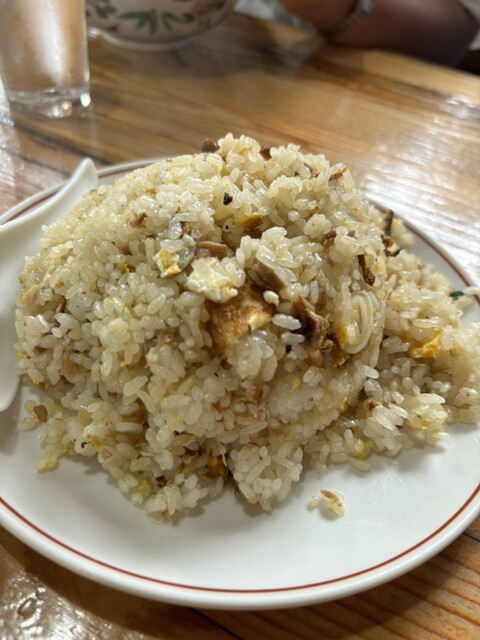 入口で声をかけ店内を見渡し、適当であろう出入口付近の4人掛けテーブル席に着き、文字のみで構成されるメニュー表より しなそば1,000円&ちゃーはん1,000円をシェアする作戦をたて、温厚篤実そうなお母さんへオーダー。