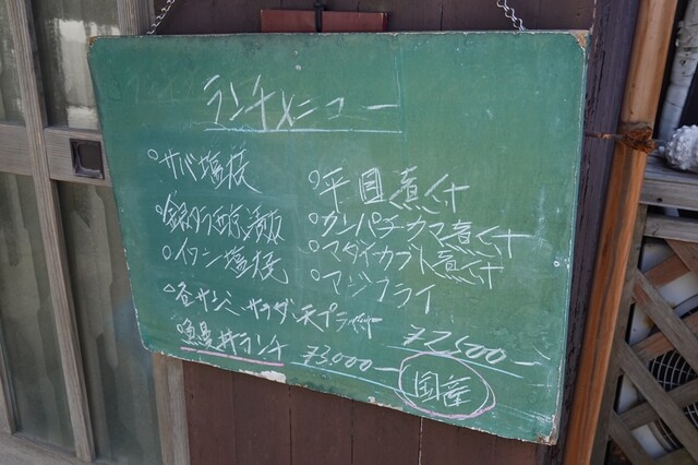 葉山・森戸海岸の裏通りにひっそりと佇むこちらの店を検索しみつけたので突然伺うことに。確かに目立たない外観で通りすぎてしまいそう。昼定食2,500円と聞いて一瞬「高いなぁ」と思いつつも他に選択肢もないし...