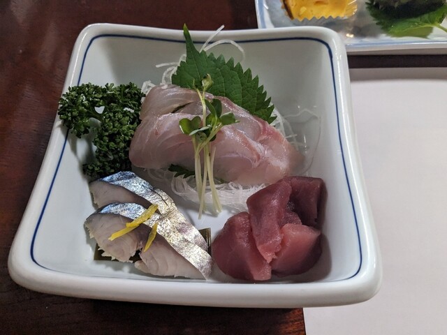 お刺身はブリ、ホウボウ、マグロ、タコ、ホ...