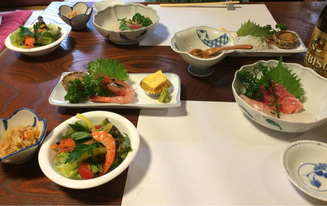 ✳︎お刺身:どれも新鮮で、全く臭み無し!そんな美味しいお刺身が次から次とへと…☆*:.。. o(≧▽≦)o .。.:*☆至福です。