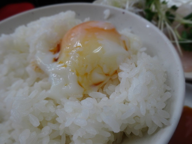 頼みの綱の温玉をご飯に載せて少し醤油を垂らして食べました。