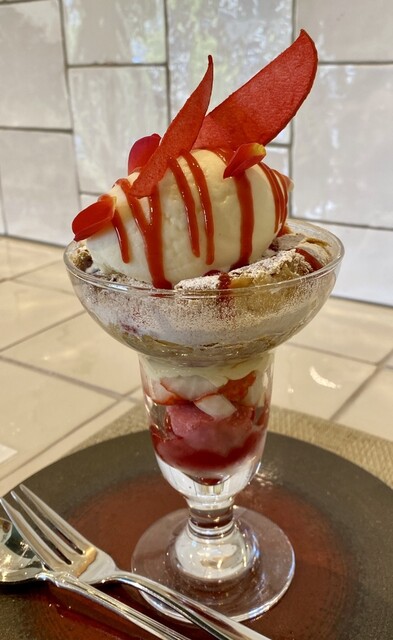 久しぶりのこちら!バレンタイン仕様のパフェがまだ食べられると聞いたら行かずにはいられません。運良く予約も取れ、2つのパフェの順番はお任せで、まずは新作"春うらら"から。