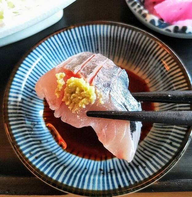 ・おまかせ刺し盛り:ヒラマサ・オナガダイ・アジの組み合わせ。