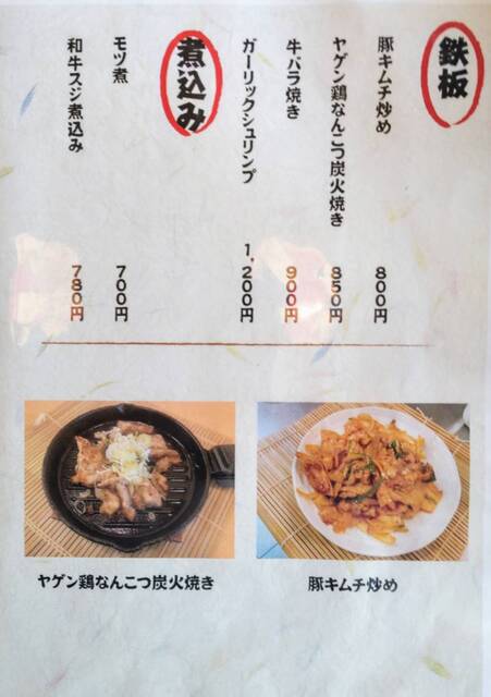 メニュ-(鉄板。煮込み)
