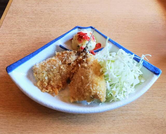・アジフライ:サイズはあまり大きくはありませんが、とても新鮮でサクッと揚がっています。