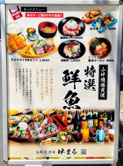 別のお店を目的に小坪に来ましたが、「ご飯とあら汁がおかわり自由」の看板に惹かれて、坪まるさんに決定。
