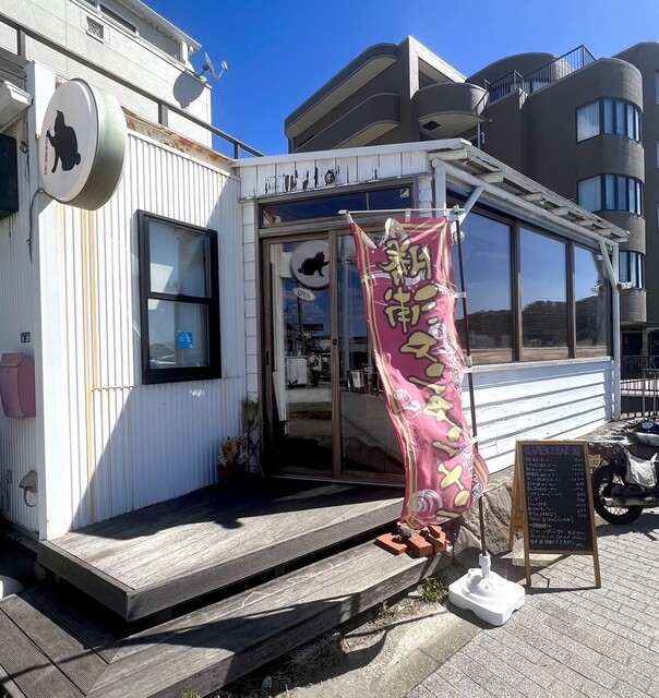 逗子海岸の海を眺めながら、千葉勝浦の名物ラーメンの勝浦タンタンメンが食べれる人気の店である。