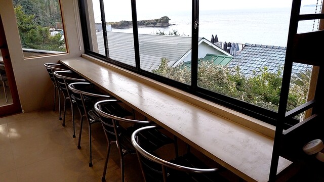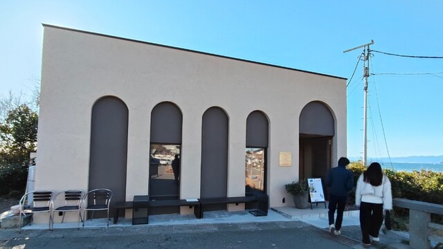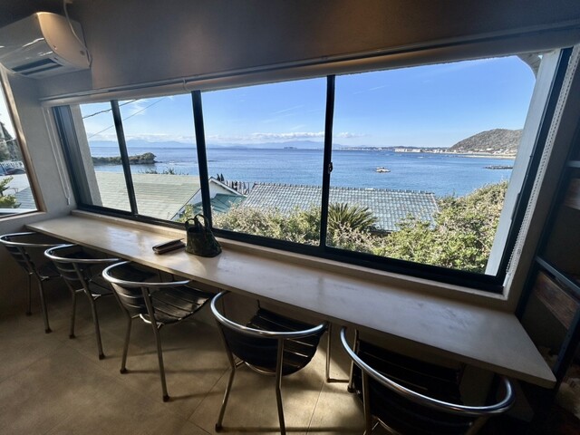 高台にあるテラス席からは、長者ヶ崎の絶壁や相模湾、...