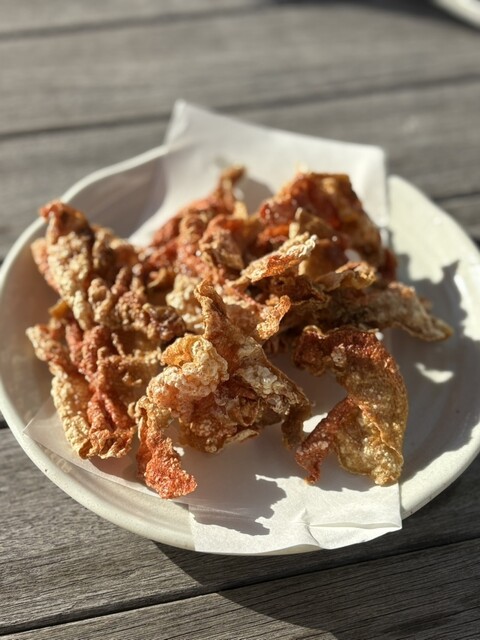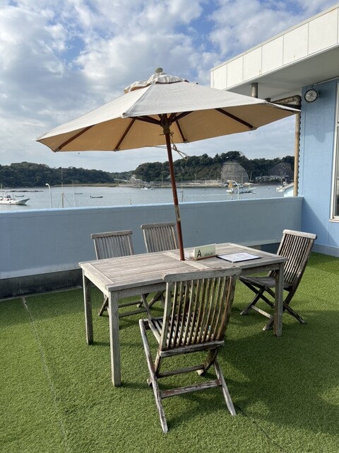 行きたくて保存していた松輪に訪問。ランチタイムをずらして14時頃に到着。2組待ちで10分程で案内されました。天気はあまり良くなかったのですが、せっかくなのでテラス席をお願いしました。