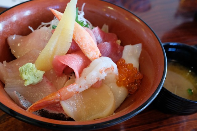 新年早々に三浦半島の先端に家族でマグロ丼を食べにドライブ。途中道路が混んでいたこともあり13時に到着。車の中でドーナツやアップルパイ食べたこともあって、お腹も程よく空いてきた時間。 鮮味楽は10人ほどの待ち人あったものの、15分程度で店内に案内される。 注文は待っていた時間に決めていたマグロいく... 詳細を見る