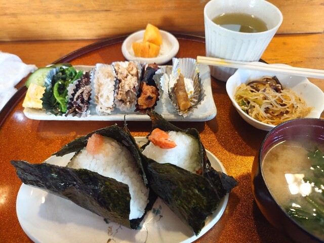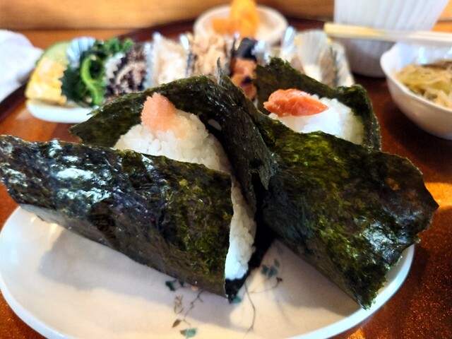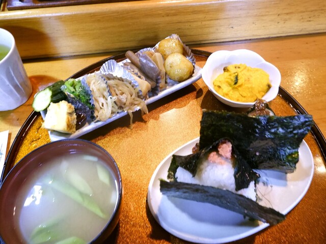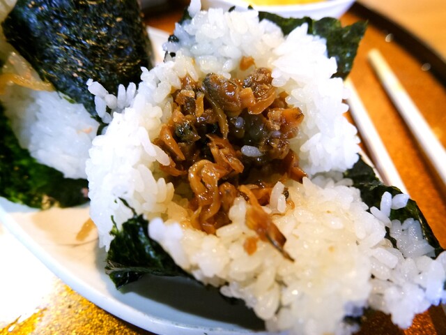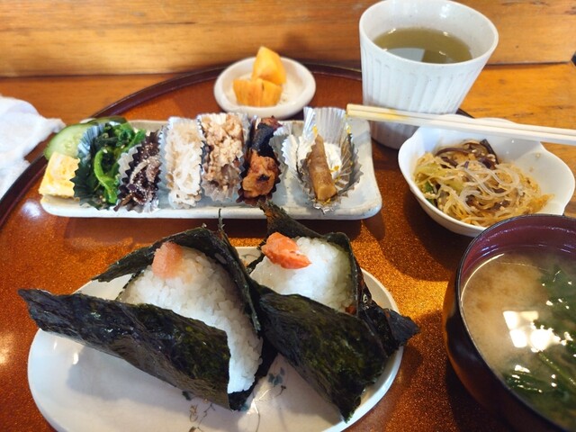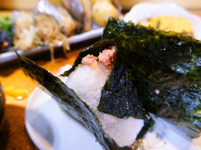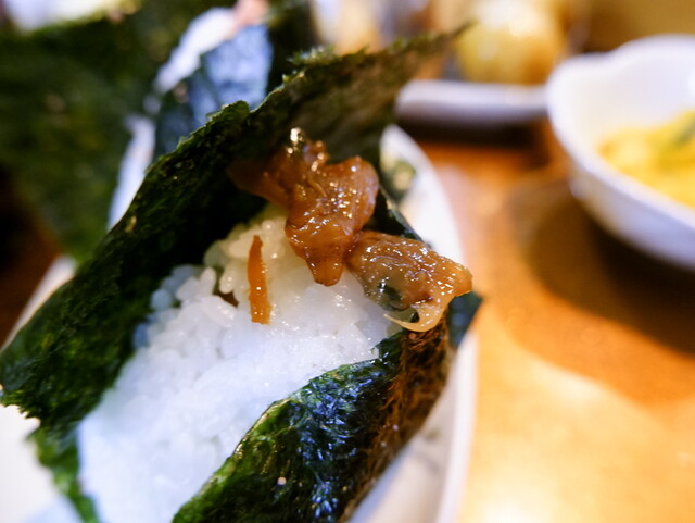 お邪魔したのは12時半頃で、座敷に1組、カウンター席に3人ほど先客がいて、皆さん常連さんのようでした。カウンターのメニューを拝見、15種のおにぎりが用意されています。