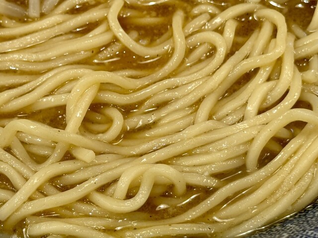 しっかりとしたこしと滑らかなのど越しを目指して作った自家製中太麺は、温度と湿度で配合を微妙に変え、毎日製造。同じ味を踏襲したつけ麺も、これまたうまい。