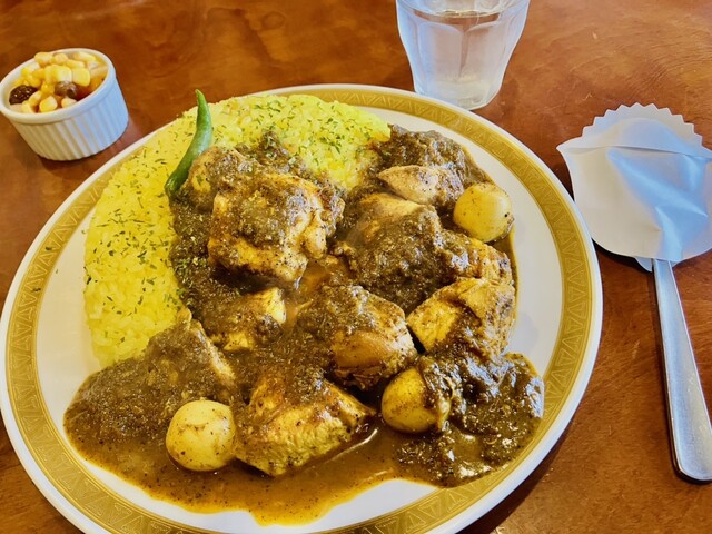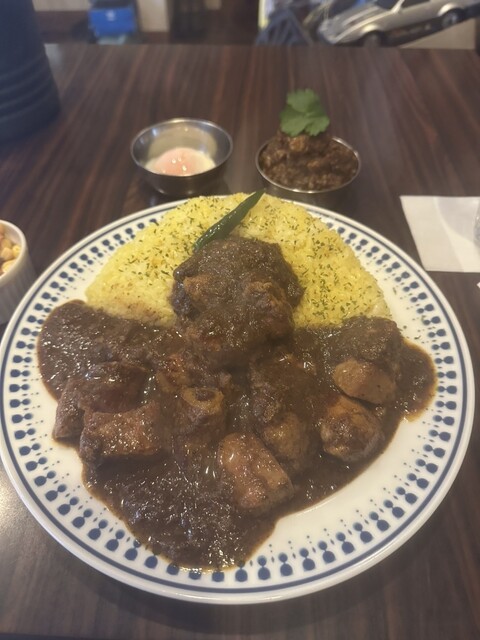 チキンカレー(辛口・普通盛り)、さらにトッピングでマトンと茄子のキーマ を追加しました。まず器に盛られたカレーは、一口頬張ると複雑...