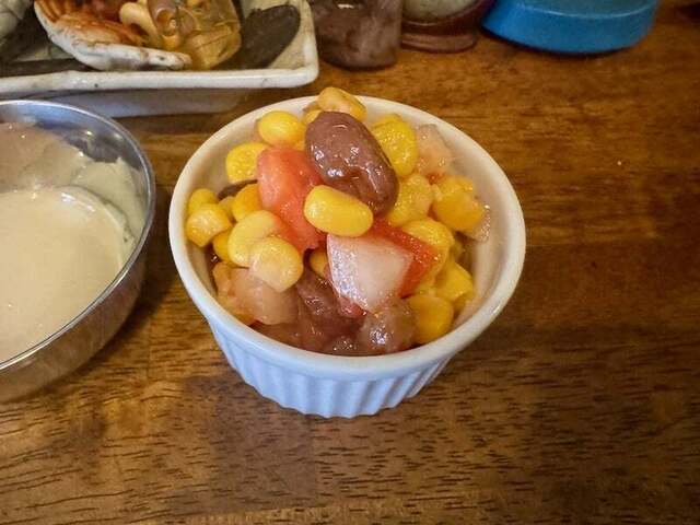 ポークカレー(1500円)…まずサラダがデザートのように甘くて、コーンのシャキシャキ食感や和風ドレッシングの旨味が凝縮したものでとてもおいしい!