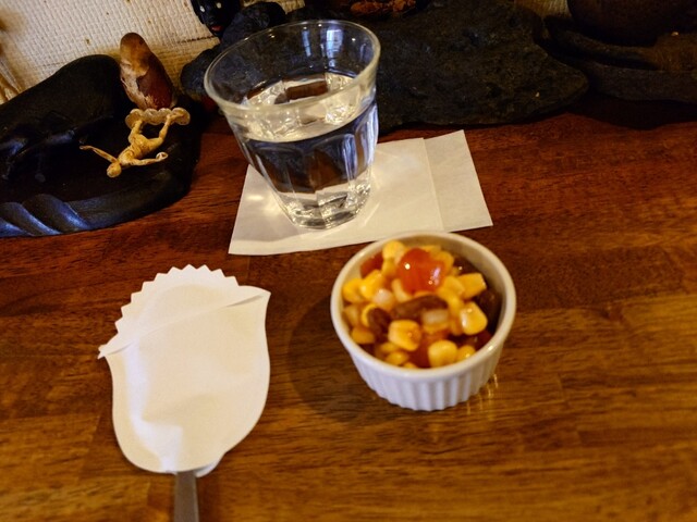 朝9:30に店頭から声をかけ、店先で口頭オーダー、渡された整理券は11:45〜のものでした。別の用を済ませ再訪して店内へ。2人がけテーブルが8席程度、カウンターに2席程度のコンパクトな店内です。