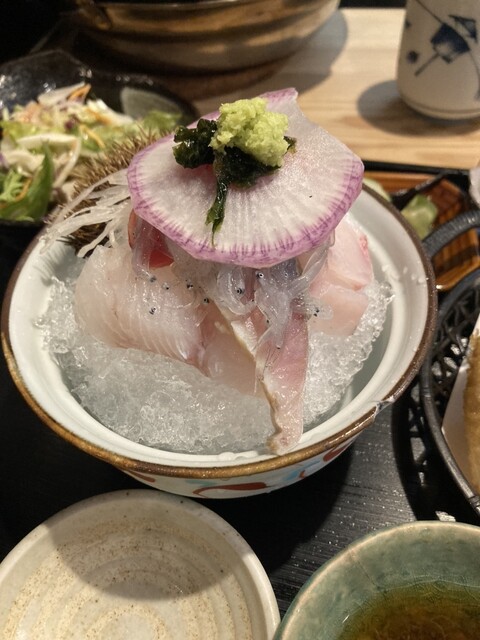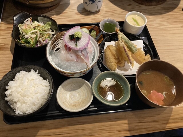 平日の昼訪問です 今回は先客が一人のみ 主人はよくばり天丼 1500円 私はいつもの兆治らんち 1100円 値上がりしました それでもまだまだお安いなと思う額です お刺身は4種、量は少ないですが色々と楽しめるのがいいなといつも思います そして手を掛けた盛り付けが嬉しいです ... 詳細を見る
