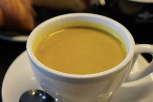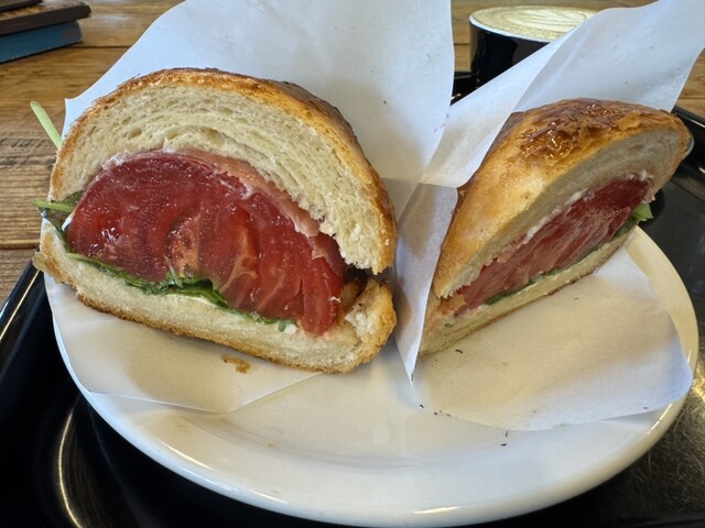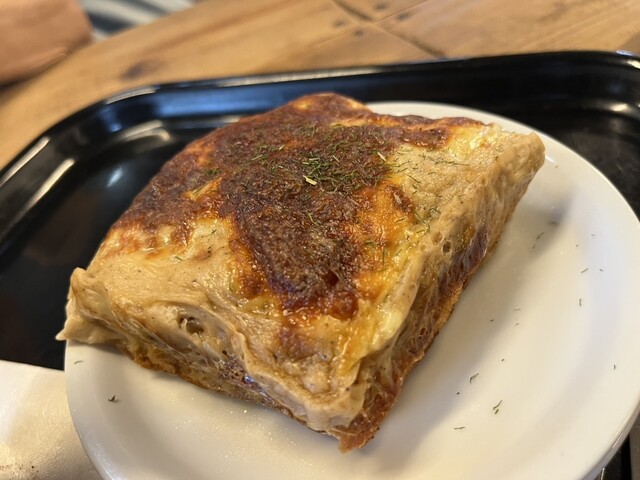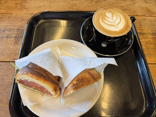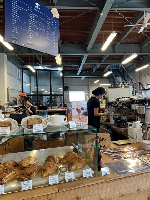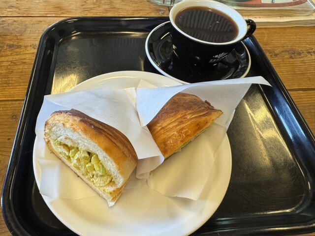 天井が高く解放感がありました。コーヒーも美味しいですが、クロワッサンのサンドイッチが大変美味しいです。グラタンやケーキも美味しそうだったのでまた次回にでも。道路沿いと少し奥に駐車場がありますがいっぱい...