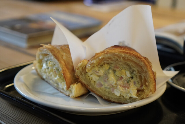 クロワッサンがとても大きい!1つでお腹がしっかり満たされました。サクサクでとても美味しかったです。クロワッサンで具材を挟んだサンドイッチも種類豊富。