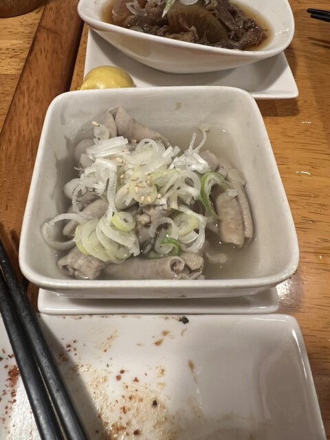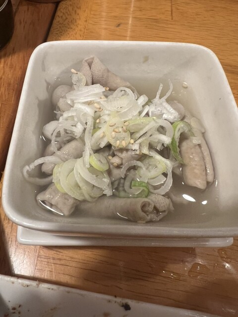 ぷりぷりのもつを塩煮込みで。