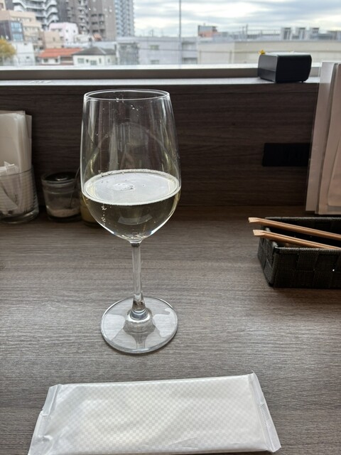 鮮魚のカルパッチョに、スパークリングワインをセットにていただきました!