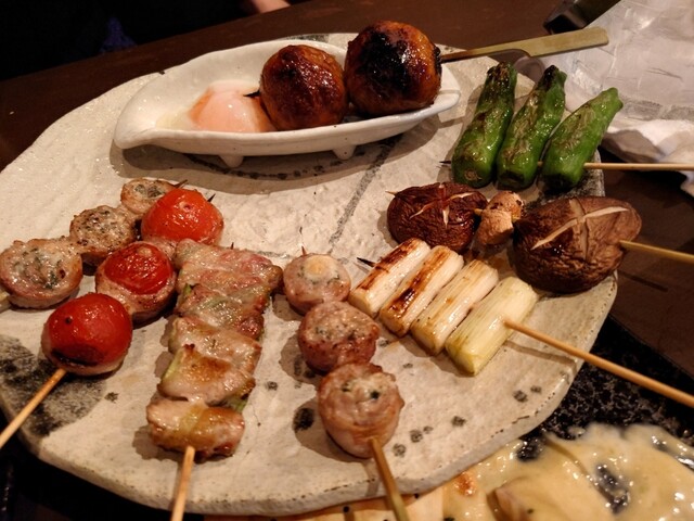 ★昼宴会12:00以降で承ります!昼宴会はコースのご予約のみOK♪お問い合わせはお気軽に♪TEL 042-770-1777★火水木日(祝前日を除く)は宴会コース通常2時間を2.5時間に延長サービス★日本酒を吹きかけながら備長炭でじっくり焼き上げた絶品串!自慢メニューは鶏モモ肉を挽いた大きなつくね!通常の2~3倍はあるため一度ゆでてから串打ちで調理にひと手間★宮崎県産日向鶏の串打ち焼きや創作串も★
