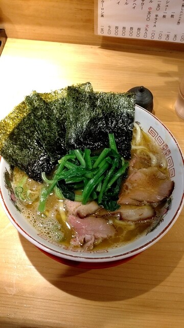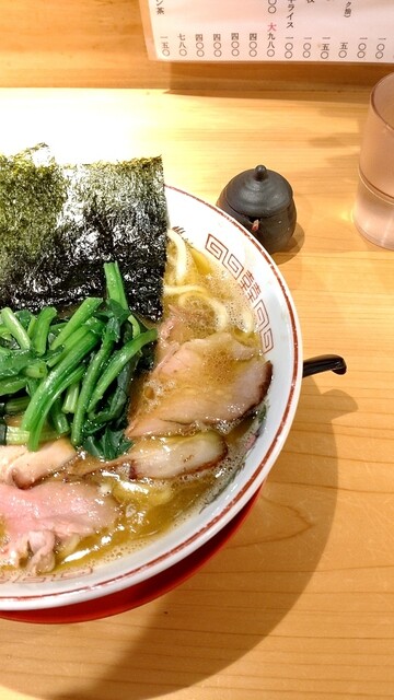 平日正午前の訪問。入口で声を掛けて店内を見渡し、一組の客の存在を確認のうえ、適当であろう出入口付近のカウンター席に付き、3種のラーメンのうち家系を選択して小サイズ800円に決め、厨... 詳細を見る