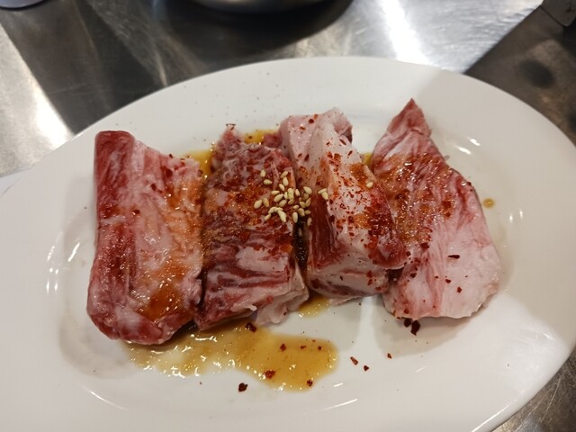 お肉にかかっている味噌ダレはコッテリしてなくて食べやすい味だった。別添えで甘だれがあり、つけた方が美味しかった。お肉は全体的に...