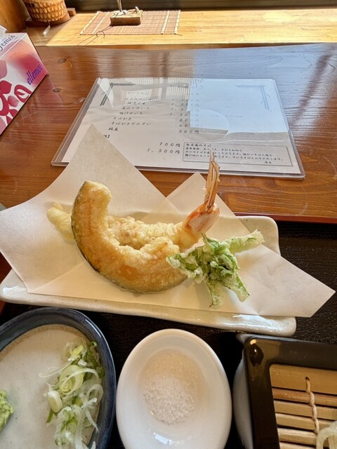 中央林間駅から少し歩いた所にありました 初めての方向なので、最初はその隣の雑木林の方に行ってしまいました 土曜の11:30に行ったら2組めで、その後もお客さんは来て満席になり、電話もかなりの回数でなっていました メニューを見ると蕎麦がきがあり、3人で行ったのでこれは確定、それと各々天ぷ... 詳細を見る