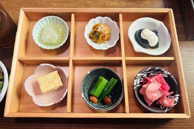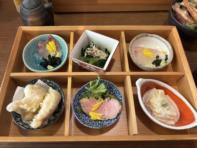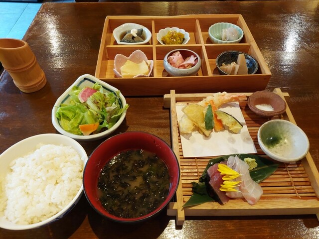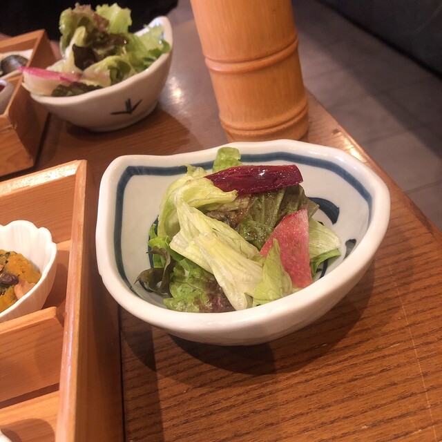 中央林間駅から比較的近い場所にありスーパーオリンピックの向かいにあるお店です。ランチは女性客を中心に賑わっておりランチメニューの中からお惣菜6種盛・有機野菜のサラダ・天ぷら刺身・ご飯・味噌汁・デザート...