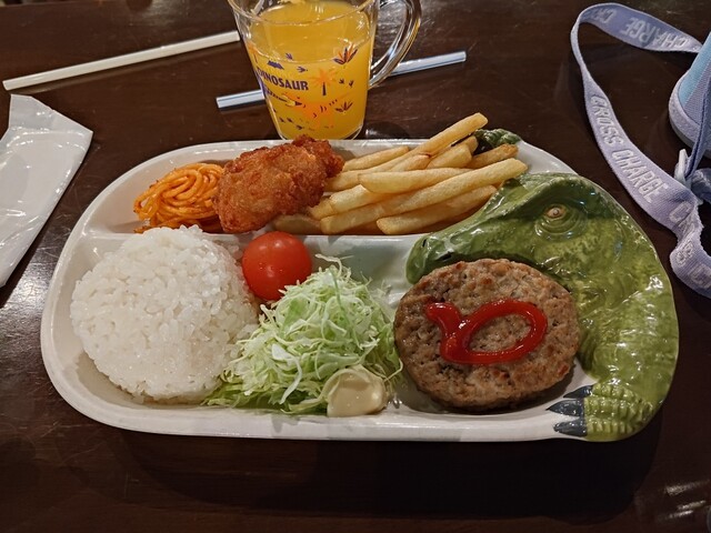 わたし2回目の恐竜レストランへ※ちび男たちはもう何度も行っているけれどわたしは2回目だった 誕生日月だとこれに乗って回れるそうだけれど、もうずっと壊れたままで・・・ 乗った状態で写真だけは撮ってもらえたけど普通に食事に来ただけって感じ(笑) ちびっ子はいつもこれ!提供早いけれど、子供に食べさせたくないハンバーグ お値段の割に量が多いので、わたしはいつもこれ! 時間がかかる!と...