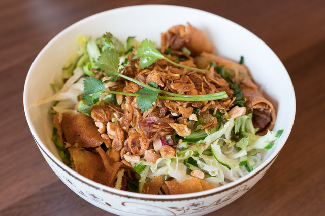 今回注文したのは焼肉と揚げ春巻き麺850円(税込)。甘塩っぱい味付けの肉と揚げ春巻きがたっぷり乗った汁なし麺で、写真左の...