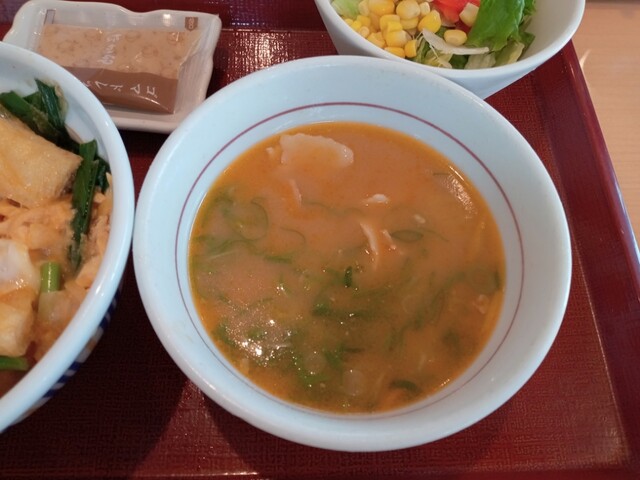 秋のメニューの「3種きのこの親子丼」をいただきました。エリンギ、しめじ、舞茸がトッピングされている親子丼です。きのこはバター醤油で香ばしい味付けですが、控えめの味付けで、きのこ本来の味わいを楽しめる仕...