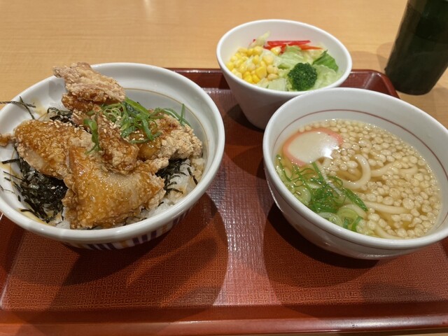 今回は唐揚げ丼にやっぱりうどんのセット サラダ付き 税込1010円に挑戦...