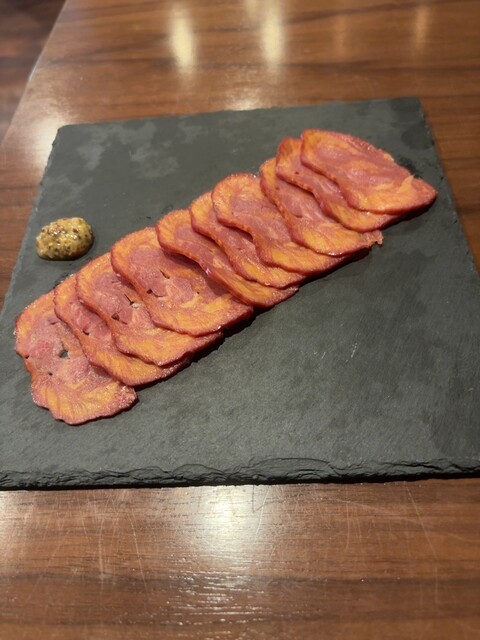 ローストホースはビーフに比べるとあっさり・さっぱりな感じで美味しい。味的に大きな違いや特徴は感じなかったが、馬肉のほうが色々と栄養価は良いらしい。薄すぎない馬肉が10枚弱あった。ソースは胡椒のピリ辛が効いた酸味あるタイプ。