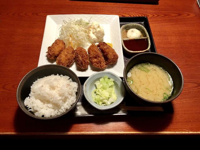 今回はカキフライを注文。さほど待つことなくランチの提供。揚げたてアツアツの牡蠣で美味しくないハズがない、美味い。衣は厚くなくいい感じです。ご飯は大盛りから小盛りまでサイズが選べるのが嬉しい。当然大盛りです(^.^)