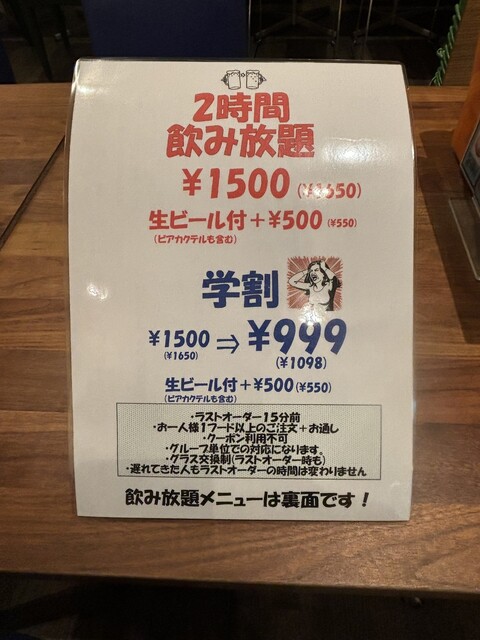 | ドリンク | 日本酒あり、焼酎あり、ワインあり、カクテルあり、焼酎にこだわる、ワインにこだわる、カクテルにこだわる |