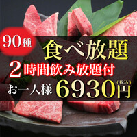 【食べ放題+飲み放題】全90品〈黒毛和牛プレミアム食べ飲み放題コース〉⇒6,930円(税込)90品