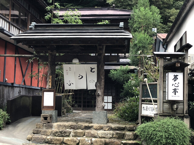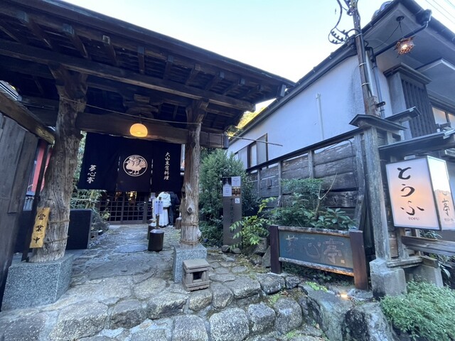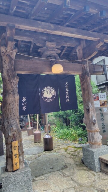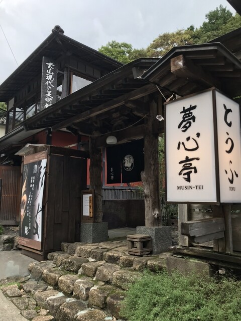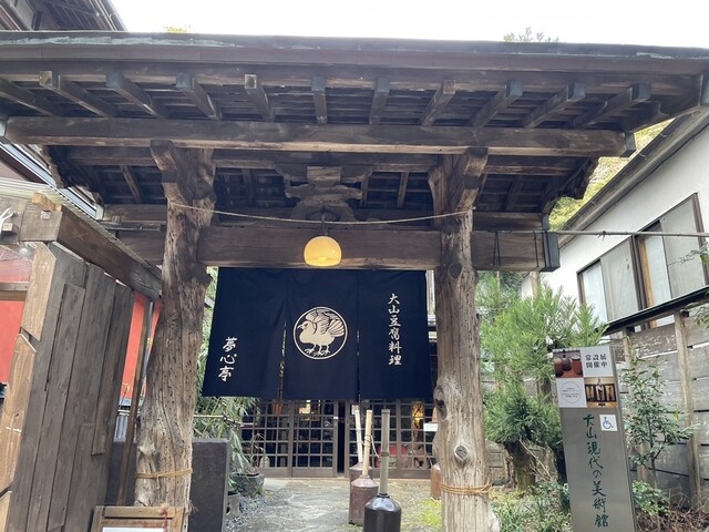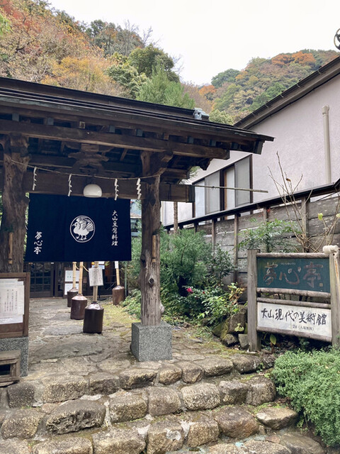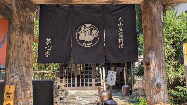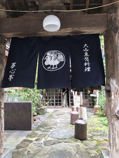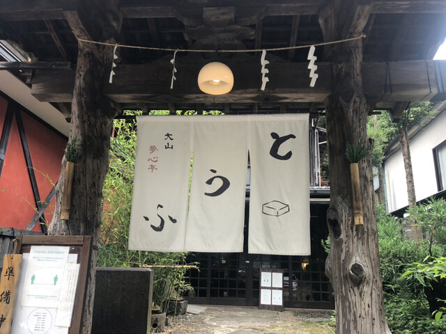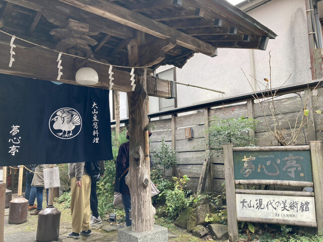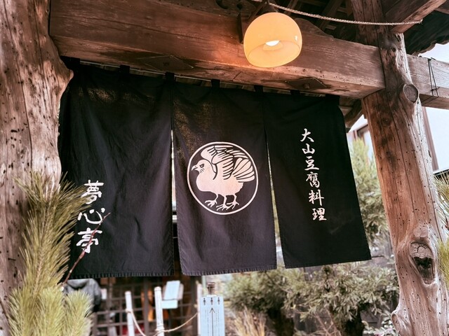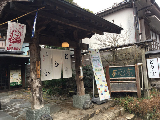 とうふ料理 夢心亭は昔の宿坊のつくりを基に現代アートと、こだわりの豆腐料理をお出ししております。 一階は豆腐料理のお食事スペース、二階は大山現代美術館となっております。 自家製の豆腐は山から直接ひいた湧水を使い毎朝仕込み、野菜は地元の提携農家で採れた新鮮な野菜、お肉は大山の鹿やイノシシ、牛、豚、鶏を使っております。 こだわりの料理とゆっくりと流れる時間をお過ごしください 。